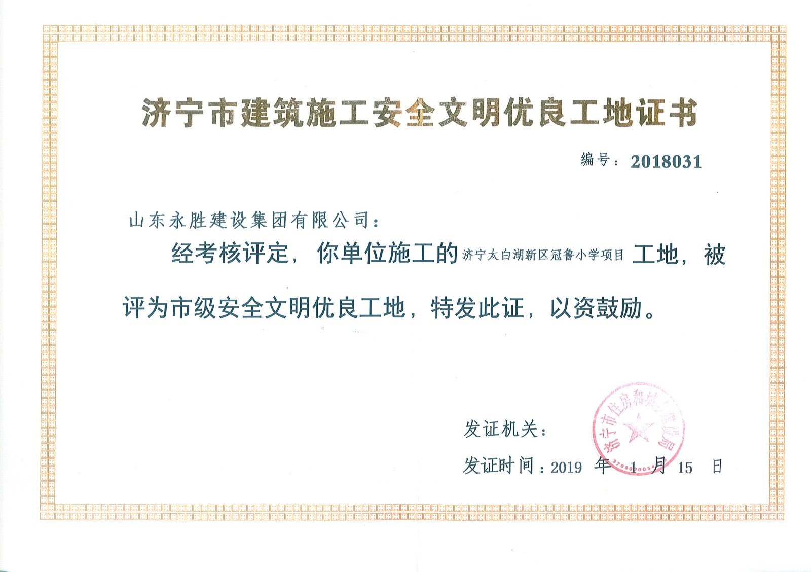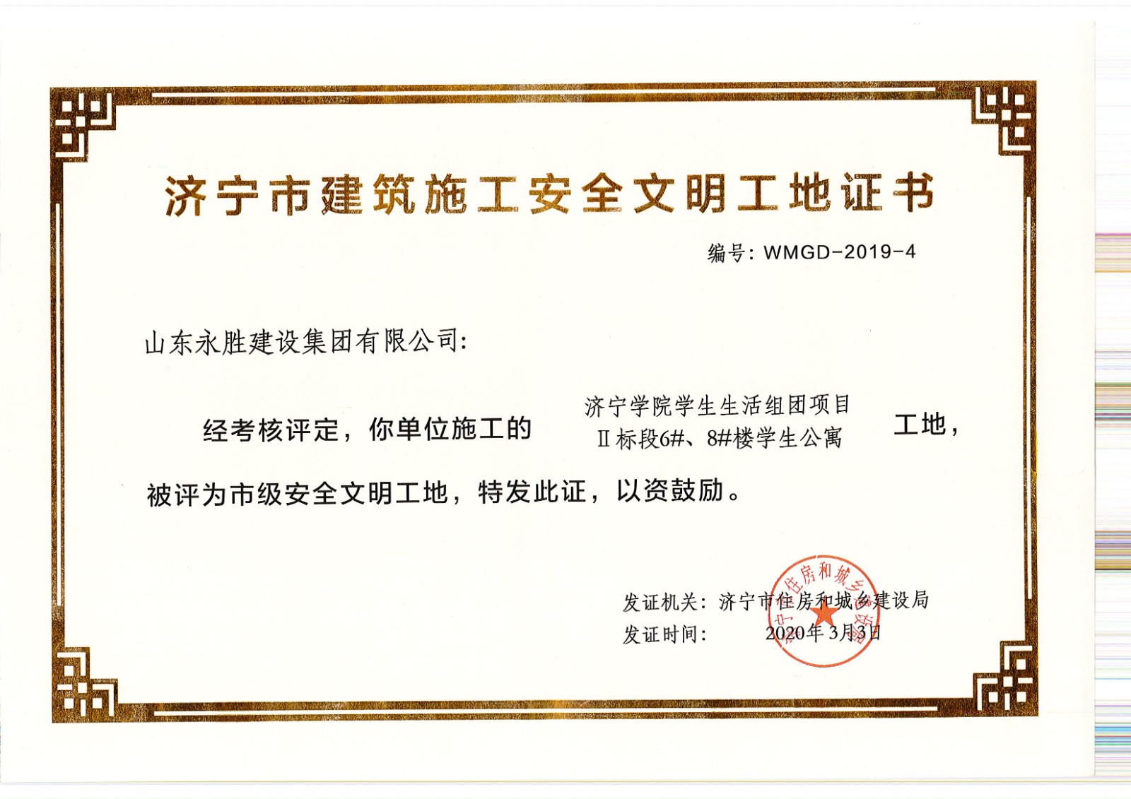 山東永勝建設集團有限公司 地址:山東省濟寧市洸河路22號新聞大廈