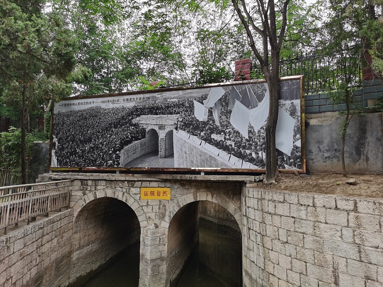 上世紀(jì)60年代,十萬開山者,歷時十年,絕壁穿石,挖渠千里,把中華民族的一面精神之旗,插在太行之巔。該工程共削平了1250座山頭,架設(shè)151座渡槽,開鑿211個隧洞,修建各種建筑物12408座,挖砌土石達2225萬立方米,紅旗渠總干渠全長70.6公里。在具有”北雄風(fēng)光最勝處”的太行山上,紅旗渠像一條藍色飄帶纏繞期間。