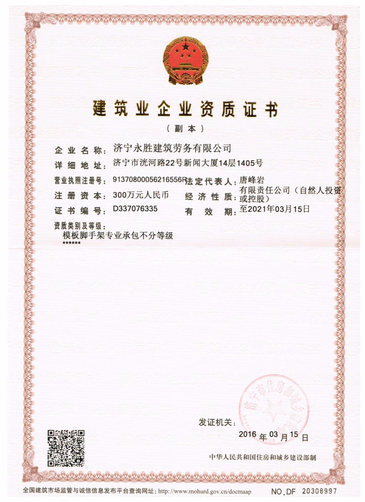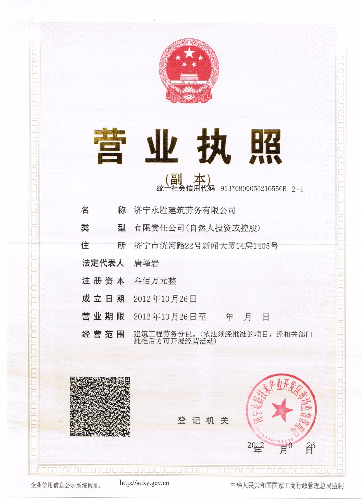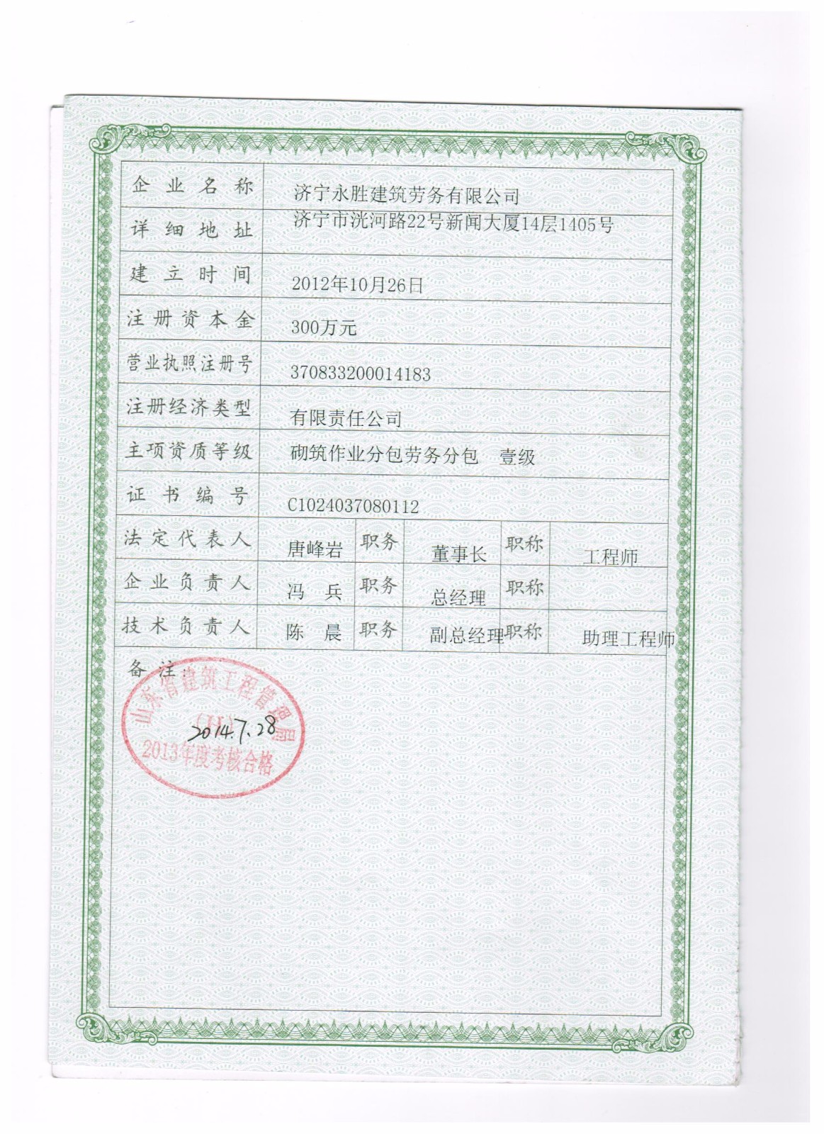 山東永勝建設(shè)集團(tuán)有限公司 地址:山東省濟(jì)寧市洸河路22號新聞大廈