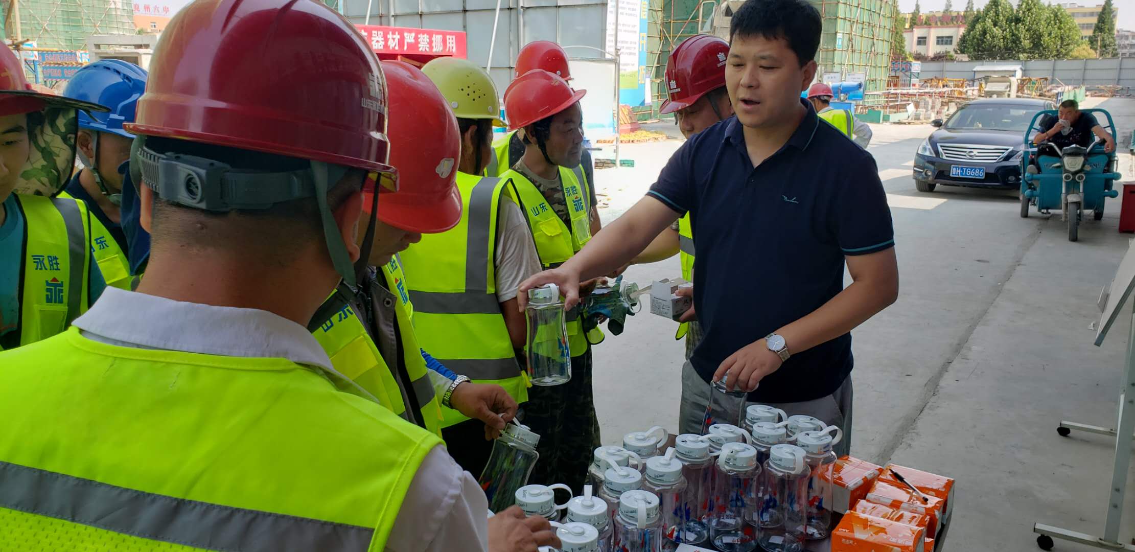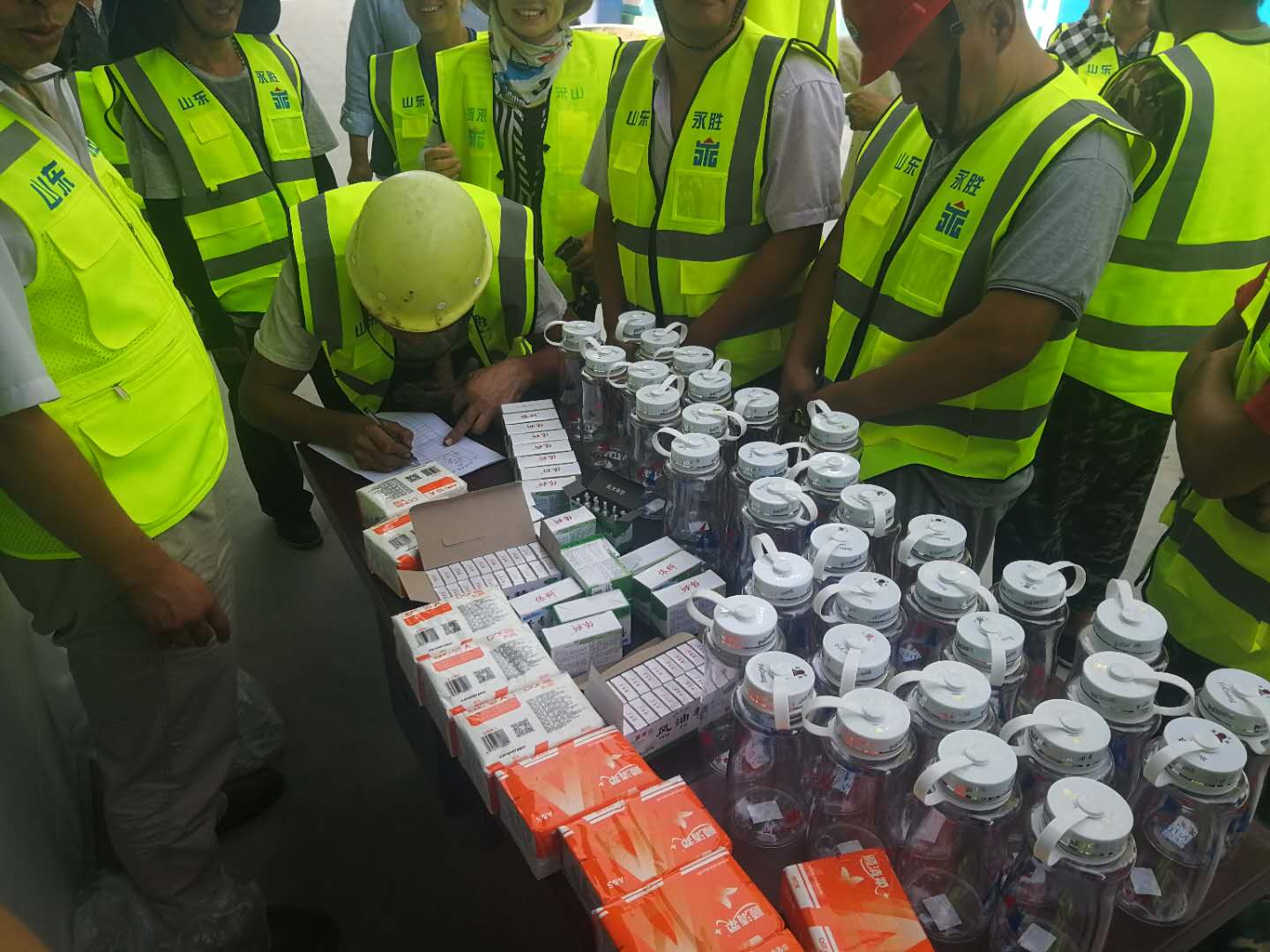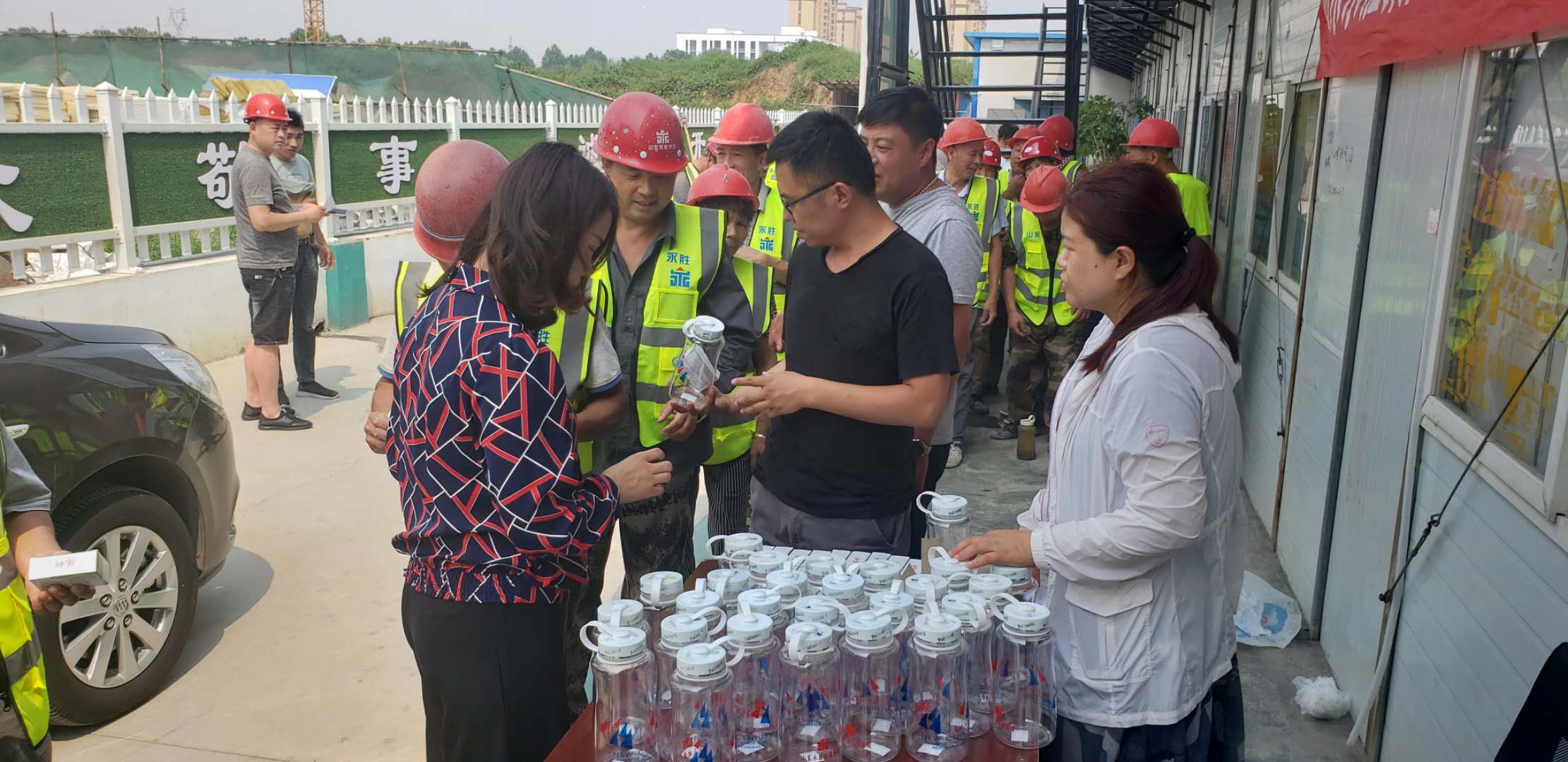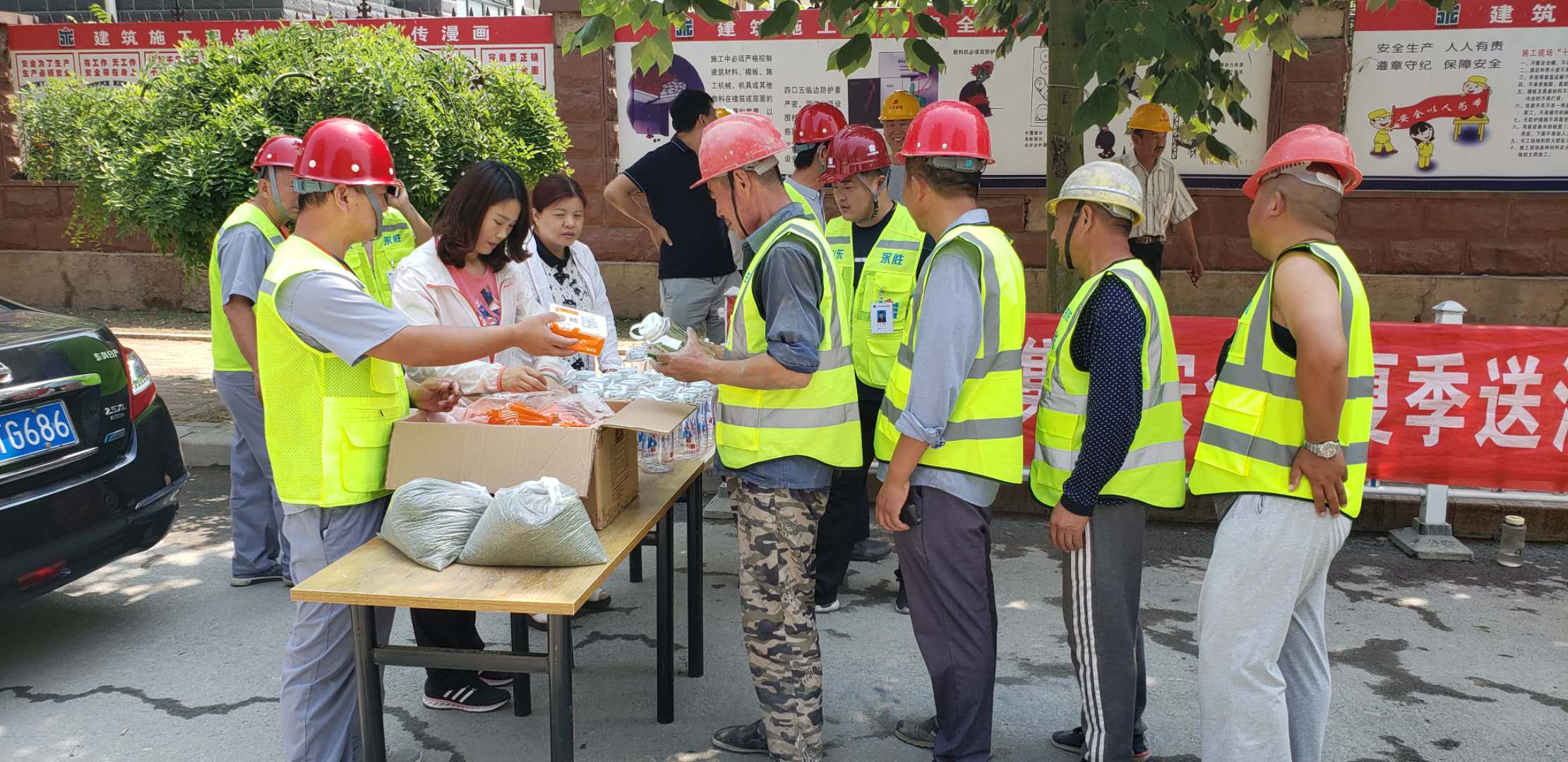驕陽似火,酷暑難當(dāng)。隨著聒噪的蟬鳴,又迎來了今年的高溫季節(jié),為做好防暑降溫工作,保障施工一線員工和廣大農(nóng)民工的健康權(quán)益,推動(dòng)改善員工生產(chǎn)生活條件,確保一線員工和廣大農(nóng)民工平安度夏。6月18日、19日,集團(tuán)公司施工部,代表集團(tuán)公司高管層和工會(huì),分別到所有在建施工一線,為職工發(fā)放了防暑藥品、涼茶、水杯、綠豆、毛巾等防暑降溫物品1000余件,把清涼送到了施工一線。